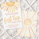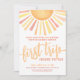 Celebre a primeira viagem ao redor do Sol com este brilhante e alegre convite de festas primeiro aniversario. No topo, a "Primeira Viagem" é destacada na caligrafia em negrito, definindo o tom para uma celebração alegre. Um sol grande com raios vibrantes em tons clássicos de amarelo, laranja, e um toque de feixes vermelhos para baixo, criando um tema quente e ensolarado. A parte inferior do convite inclui todos os detalhes do evento, estilizados em uma mistura de fontes modernas e tipografia de scripts ousados, com cores que correspondem aos raios clássicos do sol. No verso, uma versão maior do sol brilha intensamente, acrescentando um toque extra de sol ao design. Se preferir um aspecto mais vívido, pode remover a camada branca transparente do editor para melhorar as cores do sol. Esta design lúdica e radiante é perfeita para celebrar o primeiro ano do seu filho, com uma mistura de elementos viciados, retrorados e modernos. Primeira Viagem Ao Redor Do primeiro aniversario Solar Convite Cóta De Água Cor Sol Amarelo Laranja Vermelho Amarelo. Disponível como um convite impresso ou como um convite digital para download que você pode enviar por e-mail ou que foi impresso localmente!