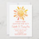 Um doce sol brilhante, estilo jato de ouro laranja, com raios, primeira viagem ao redor do sol, convite de aniversário de criança estilo aquarela. Uma cor d'água laranja esmagada e arrojada.
