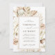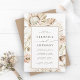 Este convite para o casamento apresenta proteas pintadas de aquarelas, orquídeas brancas, capim de pampas seco, antracúrios brancos, folhas com uma estrutura de retângulo de camelo. Para personalização mais avançada deste design, clique no link "personalizar mais". Itens correspondentes também estão disponíveis.