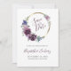 Este boho salva a placa de data apresenta uma coroa circular de cor d'água roxa em um quadro circular dourado. Personalize o script elegante de escrita manual roxa com os nomes da noiva e do noivo, e o texto serif das cinzas de carvão com a data e o local. O reverso é uma sombra de roxo sólido.