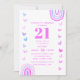 Convites Boho Purple Rainbow Modern aniversário de 21 anos