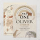 Celebrate your little one’s milestone with this elegant boho rainbow safari Wild One birthday design featuring a modern arch layout and soft earthy tones. The clean composition with subtle jungle elements creates a stylish and timeless party look.