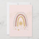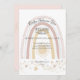 "Boho Rainbow Sunshine Pink Mostard Dourada Stars Rapariga Convite para Chá de fraldas Rapariga." Um riacho de brilho dourado, estrelas cintilantes varrem as estrelas abaixo do arco-íris. Atrás da imagem está um arco-íris BOHO pastel, cor-de-rosa rosa, pincel e amarelo-mostarda, para um tema moderno de chá de fraldas ou chá de fraldas de casal. O verso tem um fundo cor-de-rosa pálido e pálido, repetindo-se as espirais Rainbow, Sun e star. Pintada em aquarela pela artista e designer licenciada internacionalmente Audrey Jeanne Roberts, copyright.