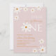 Boho retro blush rosa margarida cor-de-rosa convite para primeiro aniversario de menina floral.