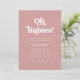 Este simples e chá de fraldas convite para gêmeos, tripletas ou múltiplos apresenta tipografia branca, retrorreflectora que diz "oh bebês" num fundo cor-de-rosa rosa empoeirado.