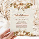 Esses convites de chá de panela de moda apresentam flores retrorreflectoras na moda e folhas em cores neutras vintage como marrom, bege, ouro, verde-oliva e creme de marfim com texto retrorreflector.