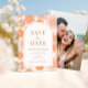 Melhore sua papelaria de casamento com nosso retrato elegante e romântico dos anos 70 com o tema "Salvar os convites de Data". Esses convites refinados apresentam um delicado arco boêmico colocado contra um padrão de flor rosa, laranja e margarida amarela. Perfeito por adicionar um toque de elegância e charme, esses convites únicos capturam lindamente a essência de um casamento de na moda.