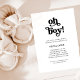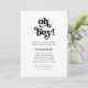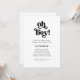 Este simples e boho. chá de fraldas preto e branco convite para um bebê mostra a tipografia retrô que diz "oh garoto".
