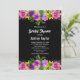 Este elegante chá de panela floral é perfeito para um moderno chá de panela floral de verão. A design romântica apresenta flores coloridas de aquarela com elegante tipografia branca sobre fundo preto.