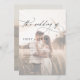 Celebre seu dia especial com nosso convite para casamento de fotos da sobreposição de boho Rustic. Apresentando uma foto de casal estilo boho sobreposta com uma caligrafia elegante, é perfeita para um eterno casamento romântico. O layout frontal e traseiro combina o moderno com o minimalismo com chic e elegância, ideal para casamentos ao ar livre ou de destino.