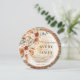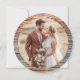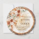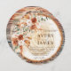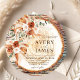 Trending 2026 boho rustic wood slice wedding invitation with pampas grass, terracotta roses, eucalyptus & natural tree ring design. Add your circular engagement photo! Elegant script invites guests to Avery & James’ April 25 celebration at The Secret Gardens of Cambria, California. Earthy boho pampas wedding stationery!