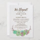 Este cartão de convite para recepção de casamento boêmio rústico com suculentas florais é perfeito para um casamento com tema rústico, no campo ou no deserto. O design apresenta lindas suculentas coloridas em verde, rosa e roxo dispostas em uma grinalda de galhos e acentuadas com confetes dourados. Os cartões de RSVP são vendidos separadamente.