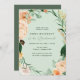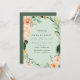 Lindas damas de honra lançam convites com um elegante tom pastel neutro, elegante, quadro verde botânico floral, em tons suaves de pêssego, laranja, blush suave, amarelos e muitos tons de verde, de verde sábio a verde brilhante e profundo. Seus detalhes personalizados são exibidos em um elevado layout tipográfico que coloca o convidado de honra em frente e no centro.