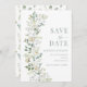 Incômoda na sofisticação com nossos refinados convites para Salvar a Data, com uma delicada coroa branca de folhas verdes sadias entrelaçadas com flores brancas e folhas de eucalipto. Elevem a antecipação para o seu casamento com este convite especial e único.