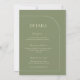 This invitation beautifully blends minimalist elegance with a warm bohemian vibe. The back features an arch-shaped Details slot for you to add you own reception, accommodation and RSVP details., set against a calming sage green background with delicate white line-art arches.