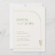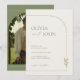 This invitation beautifully blends minimalist elegance with a warm bohemian vibe. The back features a prominent arch-shaped photo slot for you to showcase your favorite couple's picture, set against a calming sage green background with delicate white line-art arches.