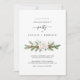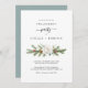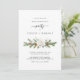 Celebre seu amor com este convite de festa de noivado verde de inverno. Apresentando uma elegante folhagem verde e moderna escrita à mão, o design é perfeito para comemorações rústicas, florestais ou de Natal. Uma escolha de na moda e eterno para anunciar seu noivado.