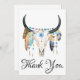 Crânio moderno e ligeiramente engraçado do estilo Boho com texto "Obrigado" é a maneira perfeita de dizer obrigados para todas as coisas grandes e pequenas.