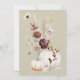 Composição do outono ao estilo aquoso com três abóboras em tons suaves em tons de creme e laranja claro. Atrás das abóboras, delicadas flores silvestres e folhagem em tons mudos de bege, marrom, burgundy e ouro amarelo criam um arranjo rústico e elegante de queda. O trabalho de arte tem uma estética aconchegante, sazonal e cottagecore, cores suaves, para o convite de Ação de Graças. DESIGN DE © Você pode personalizar com seus nomes e texto. Você pode alterar a cor do texto e o estilo da fonte usando a opção personalizá-lo. NOTA: as cores exibidas on-line podem variar ligeiramente do produto real.