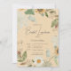 Elevem seu almoço de chá de panela com nossos convites encantadores! Abraçar a delicada beleza de um fundo de ouro macio, dolorosamente angustiado com um toque de branco macio. O convite apresenta uma charmosa e solta, enfeitada com girassóis de cor d'água russa, margaridas, rendas da Rainha Anne, e delicadas flores de campo, criando uma cena pitoresca que dá o tom para uma celebração cheia de amor e alegria. Criado pela imprensa simplesmente de farmácia.