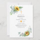 O girassol brilhante e o eucalipto, vegetação selvagem temida batismo convidam personalizável para o seu evento específico.