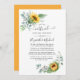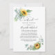 O girassol brilhante e o eucalipto selvagem verde temem o convite virtual de casamento de longa distância personalizável para suas especificidades de evento.