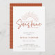 Um raio de sol está a caminho, Chá de fraldas convite. Modelo ao estilo design de tipografia quic com suporte para padrão laranja rústico.