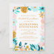 Boho Teal Blue e Dourada Watercolor Floral Bridal Convite