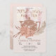 Boho rosa e terracotta hydrangeas, pampas e gramíneas secas com bule de terracotta e texto de script "Aniversário" "PAR-TEA" com texturas de faux de aquarela e gradientes de aparência de mármore. Todo texto é editável, exceto o texto do script "Aniversário", que só pode ser editado pelo designer. Design composto por Designs Holiday Hearts.