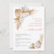 Este convite para chás de fraldas é exótico, elegante e chique. Esta bela coleção é cheio de vida, quente de uma praia ensolarada em um lugar distante. Folhas de palma quítica de Boho e flores brancas contrastam lindamente com o fundo de terracota no verso adicionando um toque elegante a essa coleção.