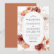 Um convite de casamento de quadro floral inspirado pela ferrugem quente rustica e por matizes terracota da natureza, para um estilo de vassoura com tipografia dentro de um quadro floral.