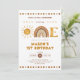 O primeiro convite de aniversário do arco-íris boêmico em terracota quente, marigold e laranja queimado. Clique no botão "personalizar mais" se quiser reorganizar e formatar o estilo e a posição do texto.