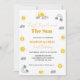 Celebre o primeiro aniversário do seu raio de sol com esta simples, mas adorável, "viagem à volta do sol" convite de aniversário! Nesta design, aparece uma aquarela boêmica terracotta e uma charmosa tipografia.