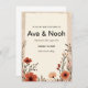 Celebre o amor com este convite de casamento floral, com tons de terracota e flores silvestres desenhadas à mão. Esta modelo editável é perfeita para casamentos rústicos, ao ar livre ou inspirados na natureza. Personalize facilmente com seus nomes, data e local.