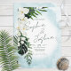 Este design apresenta um belo, esmagador verde-trópico e florais brancos num fundo azul-aqua de cor azul-aqua de Caribe mole. Perfeito para o casamento de destino ou praia. Criado pela imprensa simplesmente de farmácia.