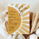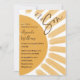 Boho Yellow Here Comes the Son Sunshine Chá de fraldas Invitation é uma maneira adorável de celebrar a chegada de um doce bebê! Eles apresentam um sol e pequenos raios ao seu redor em tons de amarelo-sol e branco com sotaques bóquicos. Perfeito para aniversários, chás de panela, feriados ou qualquer ocasião especial para celebrar o sol. Prontos para levar o seu planejamento de eventos a um patamar? Chame a sua "Vem o Filho da Luz do Sol Chamas de Bebê hoje!"