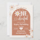 Boho Warm Tone Arch Daisy Onemagnifico Primeiro Convite de Aniversário