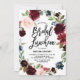 Celebrar a noiva para estar com este belo convite de lua de noiva que inclui ilustrações de cor d'água de burgundy, blush e azul de coroa floral com sotaques de folhagem. Este convite para o almoço de noiva floral é perfeito para os eventos do outono e do tema "boho". O verso do convite apresenta um fundo burgundy com uma várzea floral e duas linhas de texto personalizáveis para uma redação adicional. Itens correspondentes estão disponíveis.