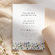 Este convite de casamento boho apresenta uma borda inferior de flores silvestres de aquarela. Personalize-o com os nomes da noiva e do noivo na face da cinza da safra. Adicione as iniciais do casal no verso, rodeadas por uma pequena camada de água correspondente.