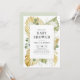 Convide convidados para o seu chá de fraldas com este convite para chá de fraldas tema boho-tropical. Apresenta uma moldura de aquarelas das palmeiras frescas e secas com bagas brancas, monstera e outros sotaques tropicais. Este convite da boêmia é perfeito para chás de fraldas de verão e chás de fraldas neutros em relação ao gênero. Personalize adicionando seus detalhes.