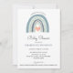 Simples e fofo bolor d'água do arco-íris convite de chá de fraldas azul. Padrão do arco-íris no verso do convite. Um estilo delicioso e caprichoso. Consulte a coleção de cheios de produtos correspondentes para este design em: https://www.zazzle.com/collections/boho_watercolor_rainbow_boy_blue_baby_shower-119057643899551113