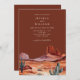 Personalize facilmente seus convites de casamento com esta modelo editável. Possui design de tipografia elegante mínima com fundo deserto de aquarela.