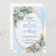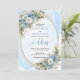 Set the tone for an unforgettable celebration with this elegant watercolor wedding invitation, beautifully designed with dusty blue florals, soft white peonies, and delicate eucalyptus