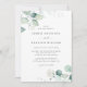 Convite de casamento personalizável. Apresenta ilustração aquosa de folhas de eucalipto e flores. Personalize este convite de casamento verde adicionando seus detalhes de casamento. Este convite de casamento de eucalipto com aquarelas é perfeito para casamentos de primavera, casamentos no inverno e casamentos de boho.