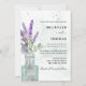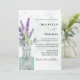 Convite para casamento Boho, com lavanda e eucalipto dispostos em garrafa de vintage e pintados em aquarela. Trabalho de arte original e exclusivo criado no estúdio para o seu dia especial. Personalize com facilidade.