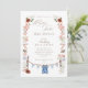 Celebre a chegada da sua vaquinha com o nosso belo convite para chá de fraldas de boho e cowboy. Este encantador convite combina perfeitamente a elegância bucal com um toque de chorona ocidental, criando uma maneira deliciosa e memorável de convidar seus entes queridos a compartilhar sua alegria. Este charmoso design capta a sensação rústica e selvagem do oeste, acrescentando um toque único e brincalhão ao convite. Ficar pendurado na corda é uma adorável roupa azul de vaqueiro, acompanhada por bandeiras de bunting que soltam a palavra "bebê". Estes detalhes deliciosos acrescentam uma sensação de diversão e capricho, definindo perfeitamente o tom para uma celebração de chá de fraldas alegre. Ao redor dos detalhes do evento estão nossos aquarelas desenhadas à mão. Essas delicadas flores enquadram o texto de forma bela, acrescentando ao convite um elemento de elegância natural e sofisticação. Este belo convite para chás de fraldas criará um anúncio impressionante e memorável que reflete o amor e o entusiasmo deste tempo especial. Ilustração desenhada à mão original e design por Paparia de Moodthologia