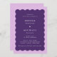 Um convite para casamento lilás e roxo retro na fronteira ondulada