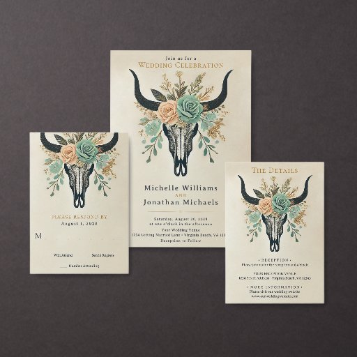 Floral Cow Skull Boho Western Wedding SetCriado por Michelle Istanish