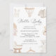 Surpreenda seus entes queridos com este convite elegante, com roupas de bebê boho e detalhes editáveis. Personalize-o facilmente clicando na opção "personalizar".