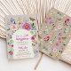 Apresentando um conjunto vibrante de flores silvestres coloridas do véu e borboletas delicadas, este belo convite encarna a frescura e a capricho da primavera. O arranjo floral se rompe com cores vivas, entrelaçado com a graciosa flauta das asas de borboletas, cada elemento rendido em detalhes refinados para capturar a essência de um jardim florescente.